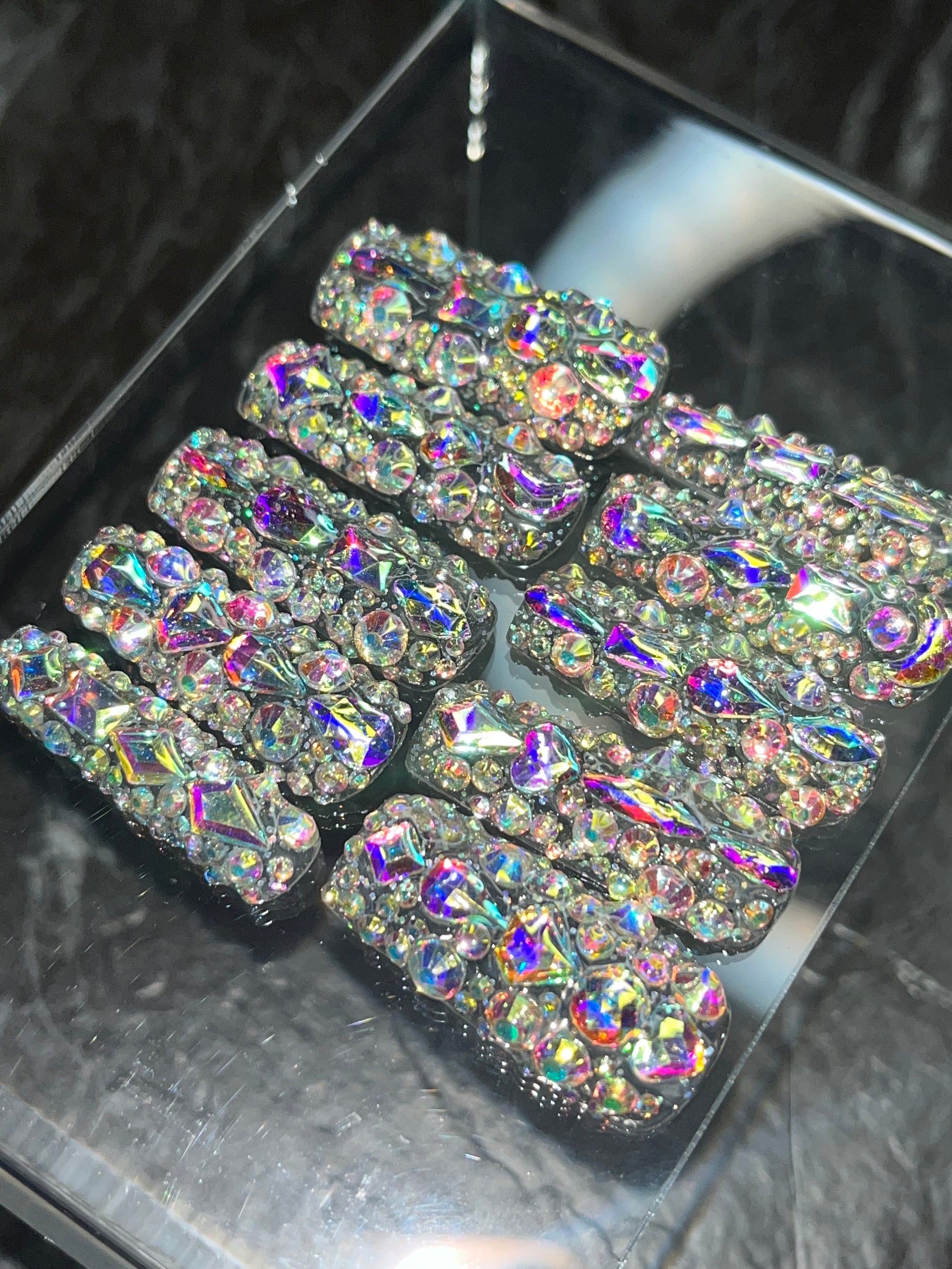 "Press On, Or Off ⏯️ On Your Time Because Our Reusable Press On Nails 💅🏿 Speaks Volumes and can be remixed again and again!" 🗣️